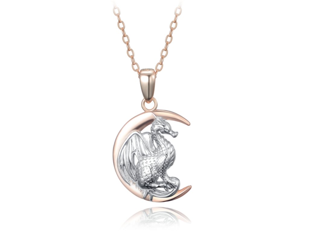 MINET Stříbrný náhrdelník drak na měsíci v kombinaci s rosegold