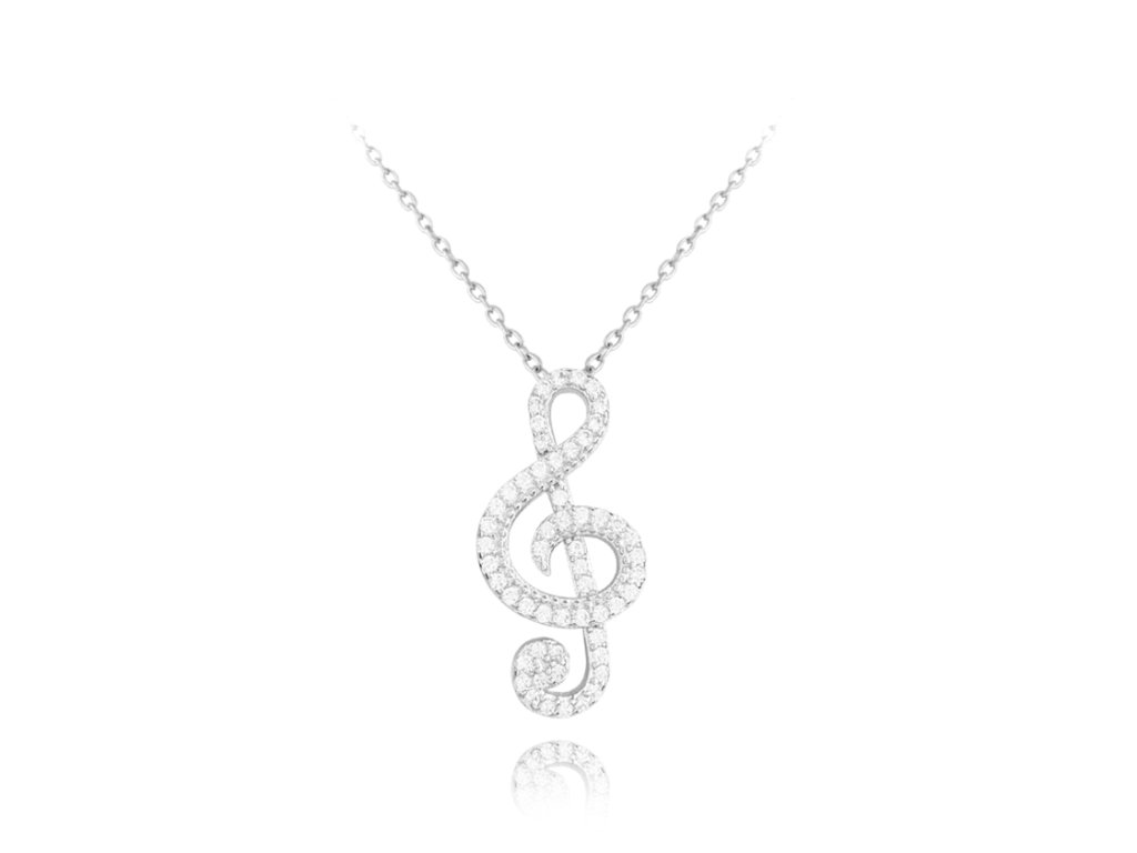 MINET Stříbrný náhrdelník HOUSLOVÝ KLÍČ s bílými zirkony