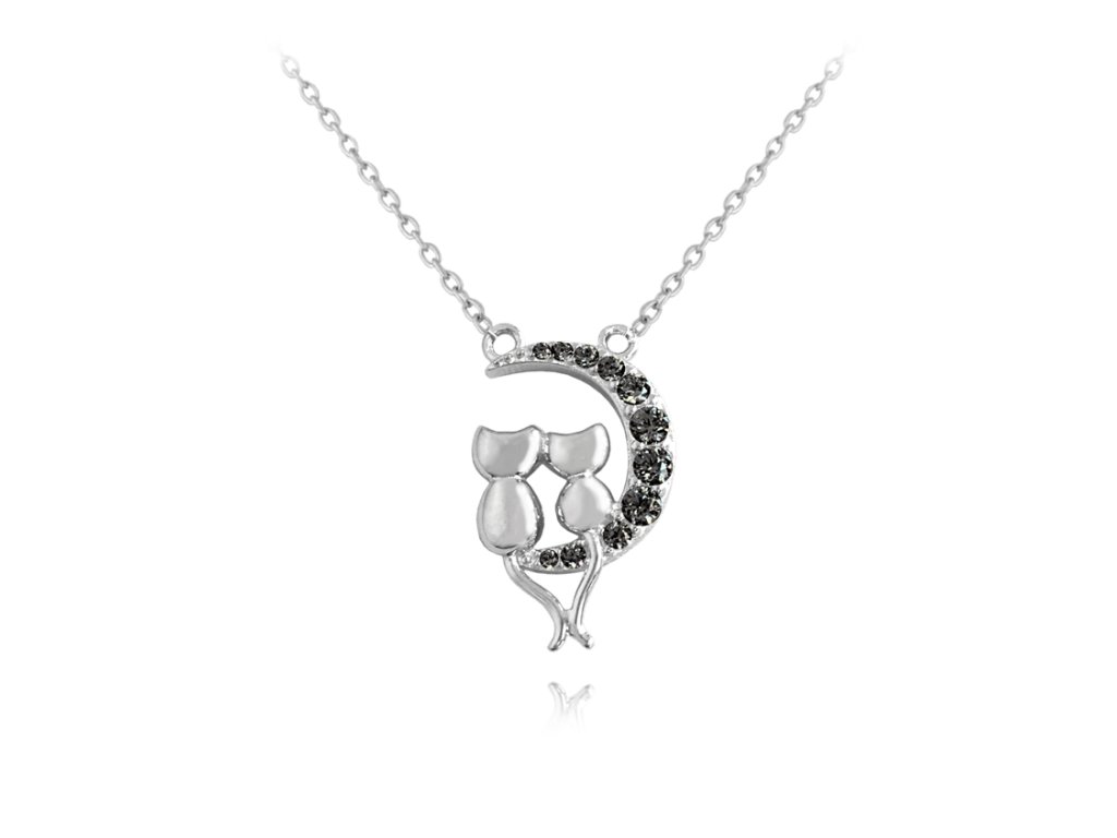 MINET Stříbrný náhrdelník KOČKY na černém měsíci
