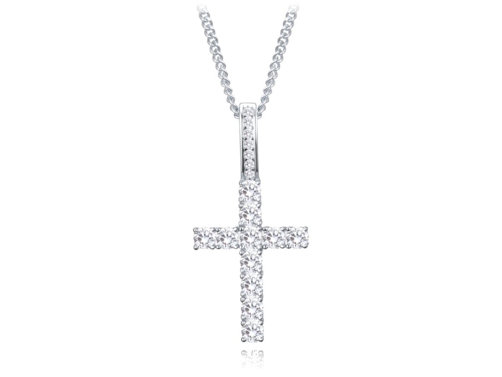 MINET Stříbrný náhrdelník křížek se zirkony