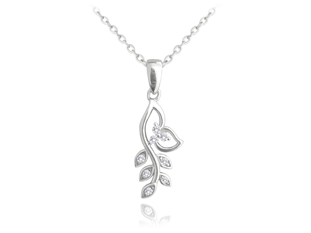 MINET Stříbrný náhrdelník LÍSTKY s bílými zirkony