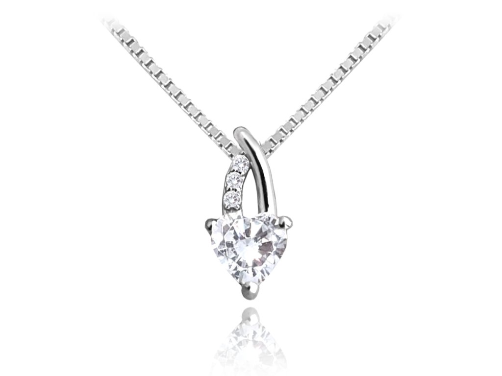 MINET Stříbrný náhrdelník LOVE s bílým srdíčkovým zirkonem