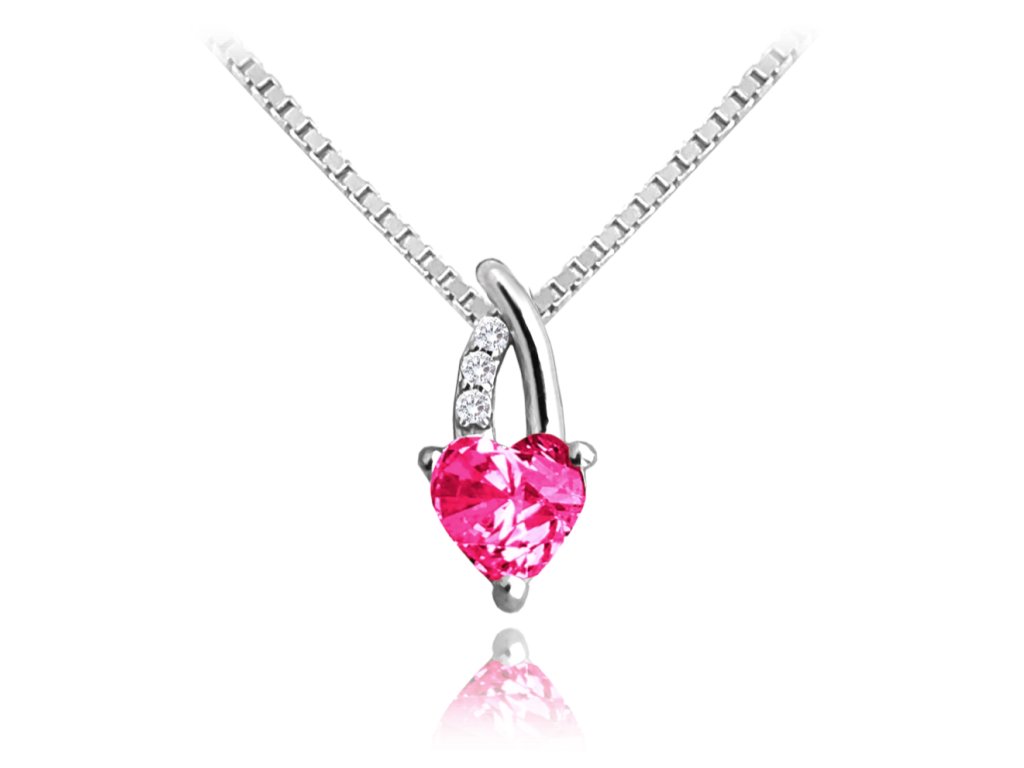 MINET Stříbrný náhrdelník LOVE s růžovým srdíčkovým zirkonem