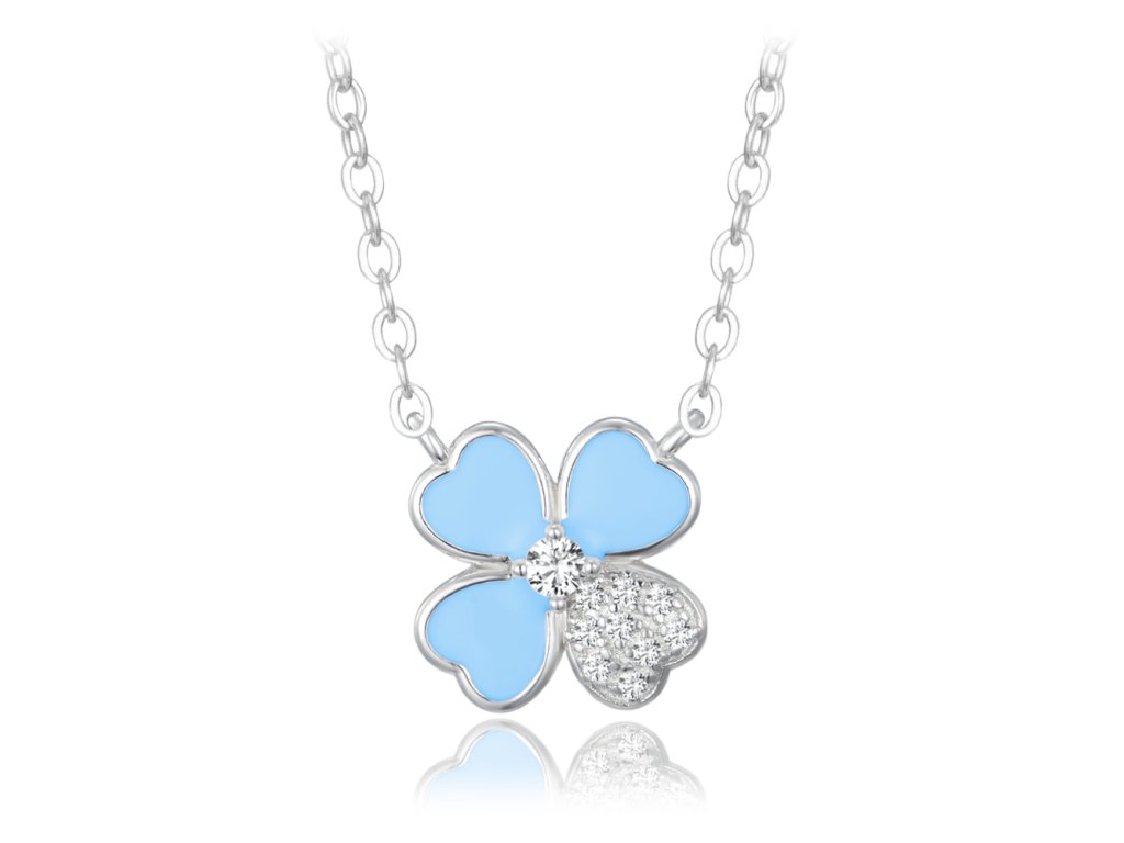 MINET Stříbrný náhrdelník modrá kytička s bílým zirkonem