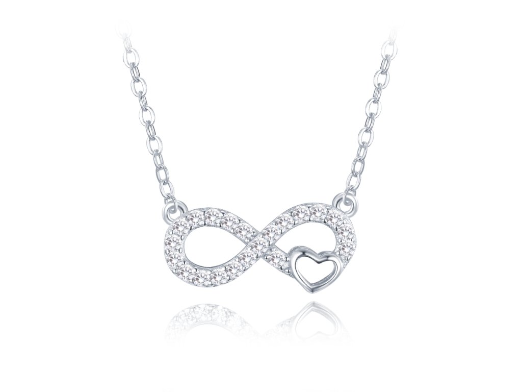 MINET Stříbrný náhrdelník nekonečno se srdíčkem a bílými zirkony