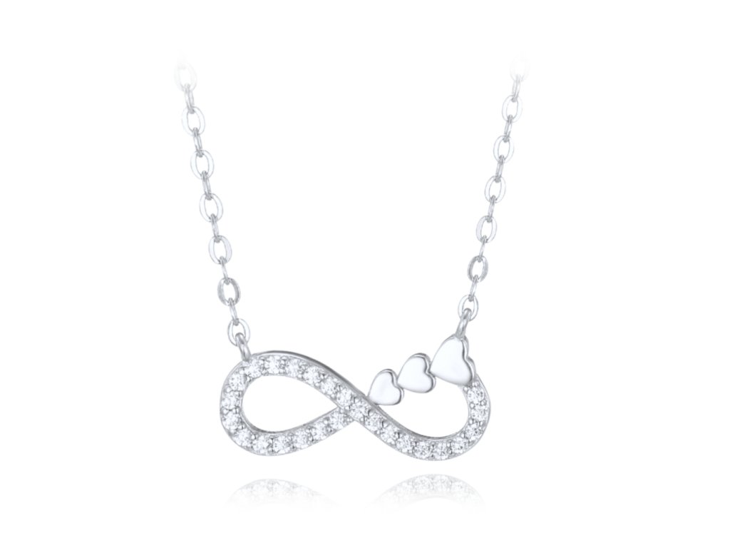 MINET Stříbrný náhrdelník nekonečno se srdíčky a bílými zirkony