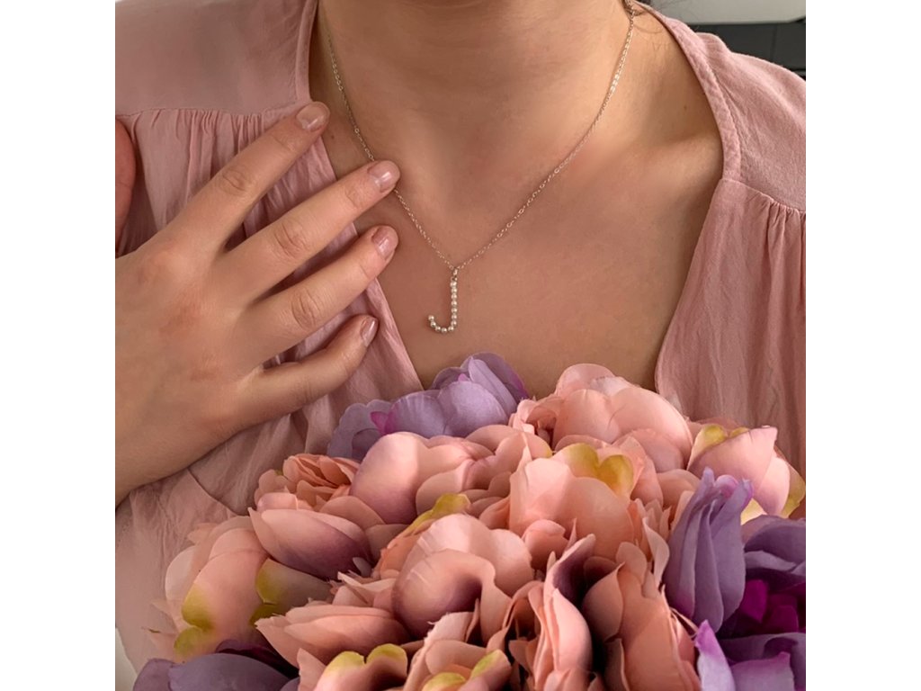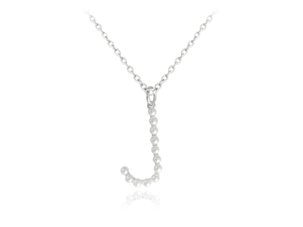 MINET Stříbrný náhrdelník písmeno "J" s perličkami