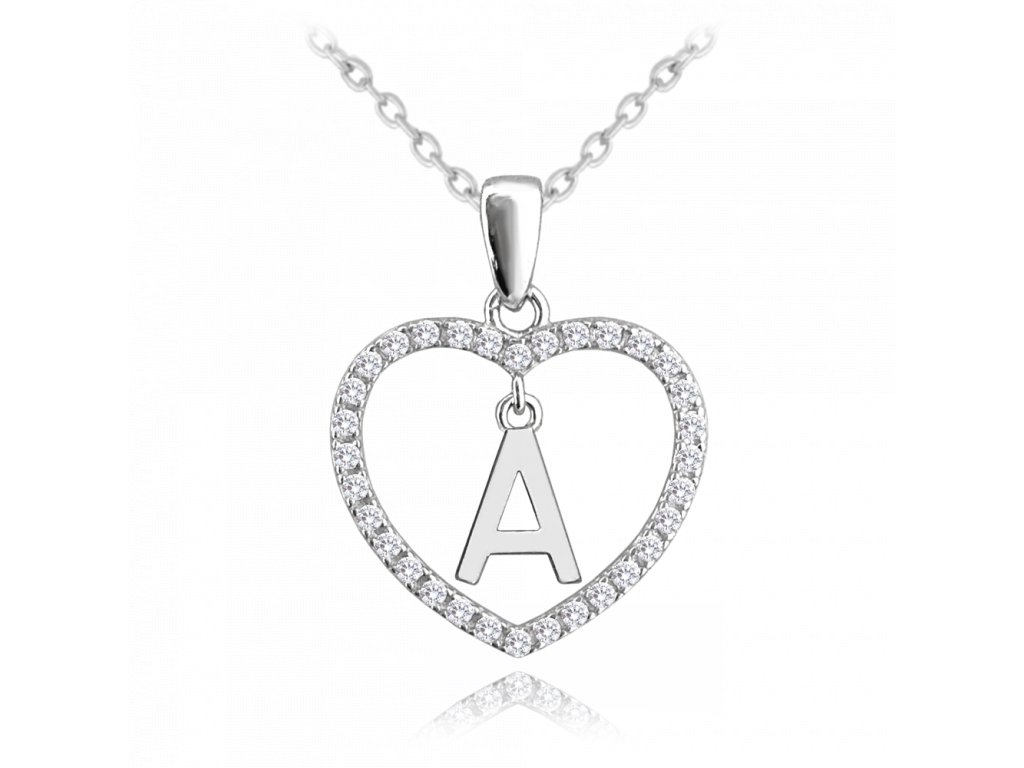 MINET Stříbrný náhrdelník písmeno v srdíčku "A" se zirkony