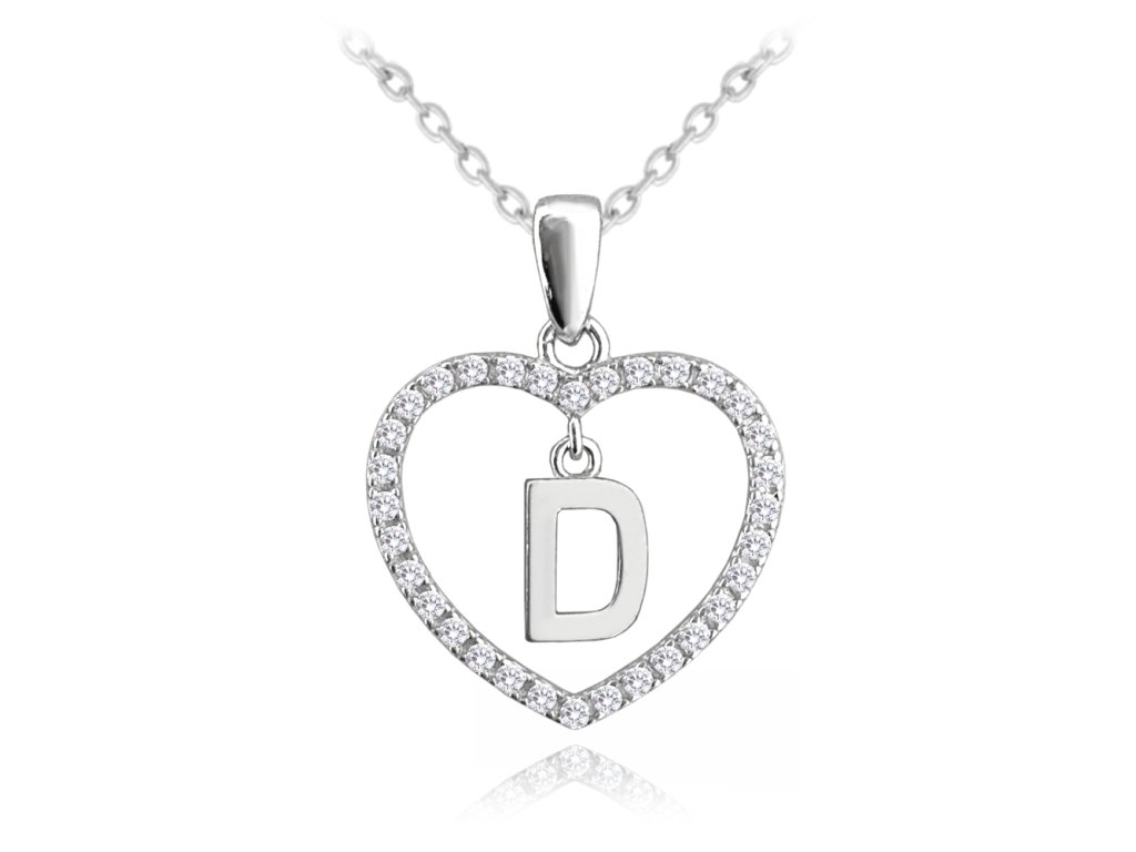 MINET Stříbrný náhrdelník písmeno v srdíčku "D" se zirkony
