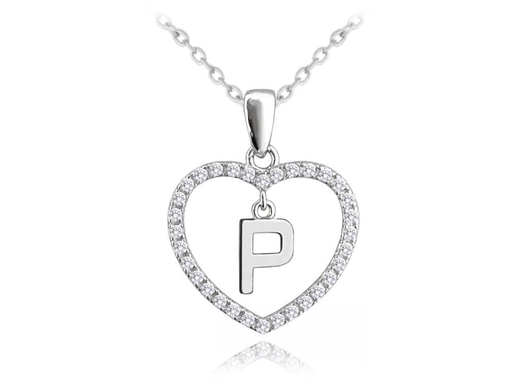 MINET Stříbrný náhrdelník písmeno v srdíčku "P" se zirkony