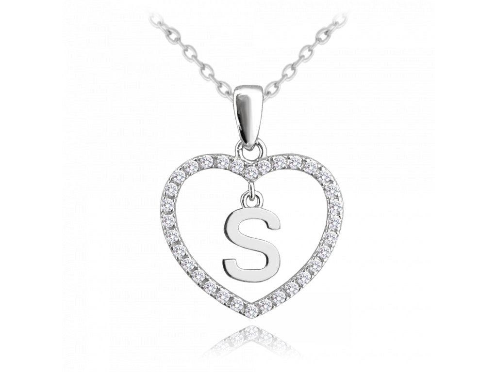 MINET Stříbrný náhrdelník písmeno v srdíčku "S" se zirkony