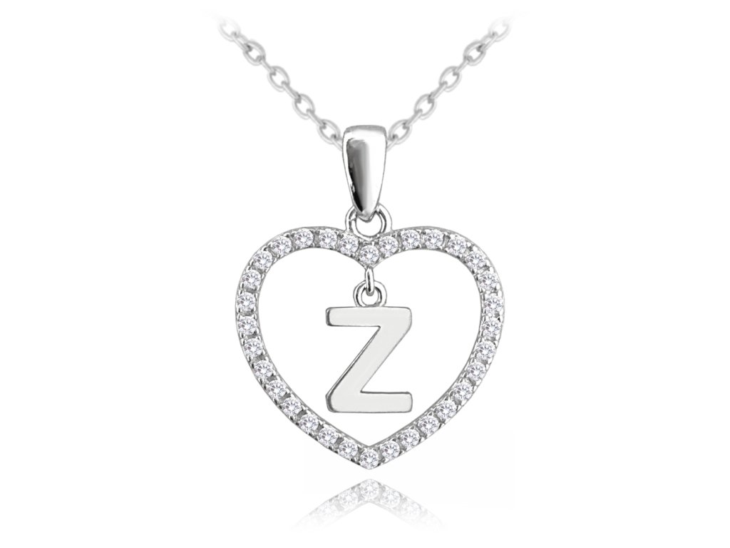 MINET Stříbrný náhrdelník písmeno v srdíčku "Z" se zirkony