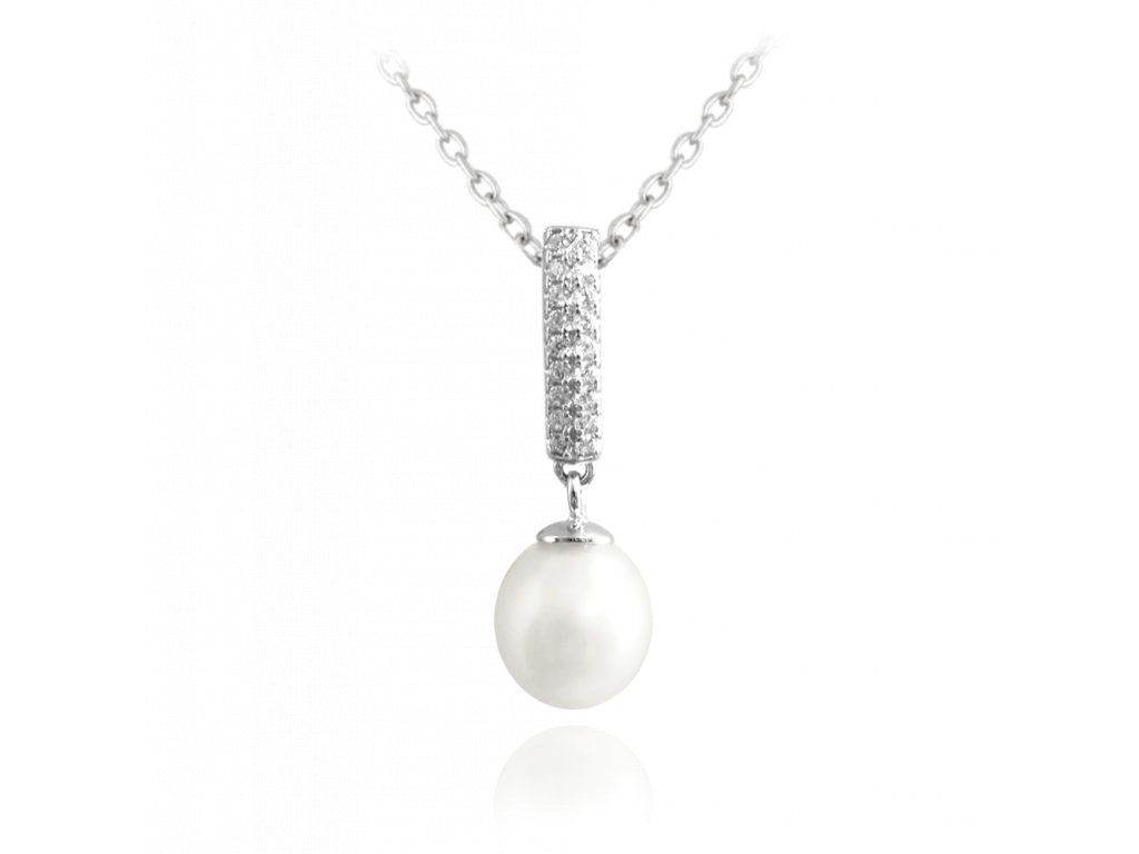 MINET Stříbrný náhrdelník přírodní bílé perly se zirkony