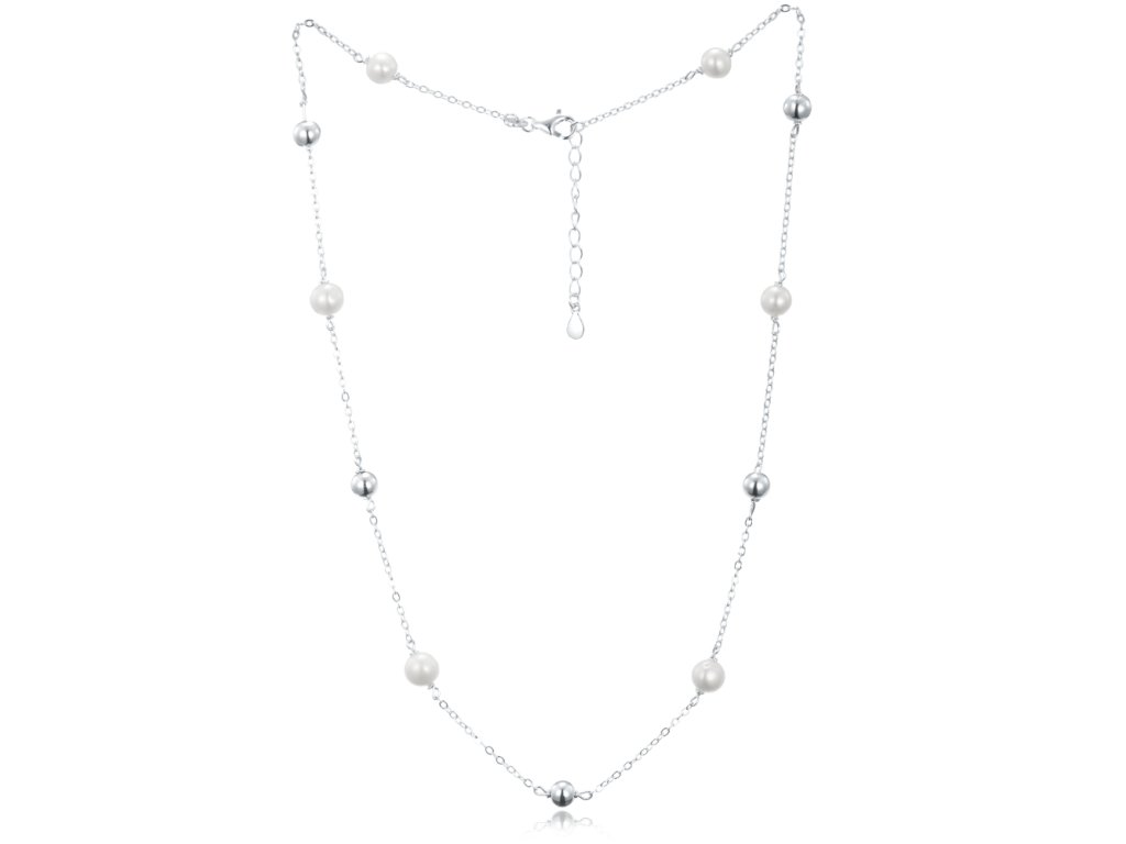 MINET Stříbrný náhrdelník s kuličkami a přírodními perlami