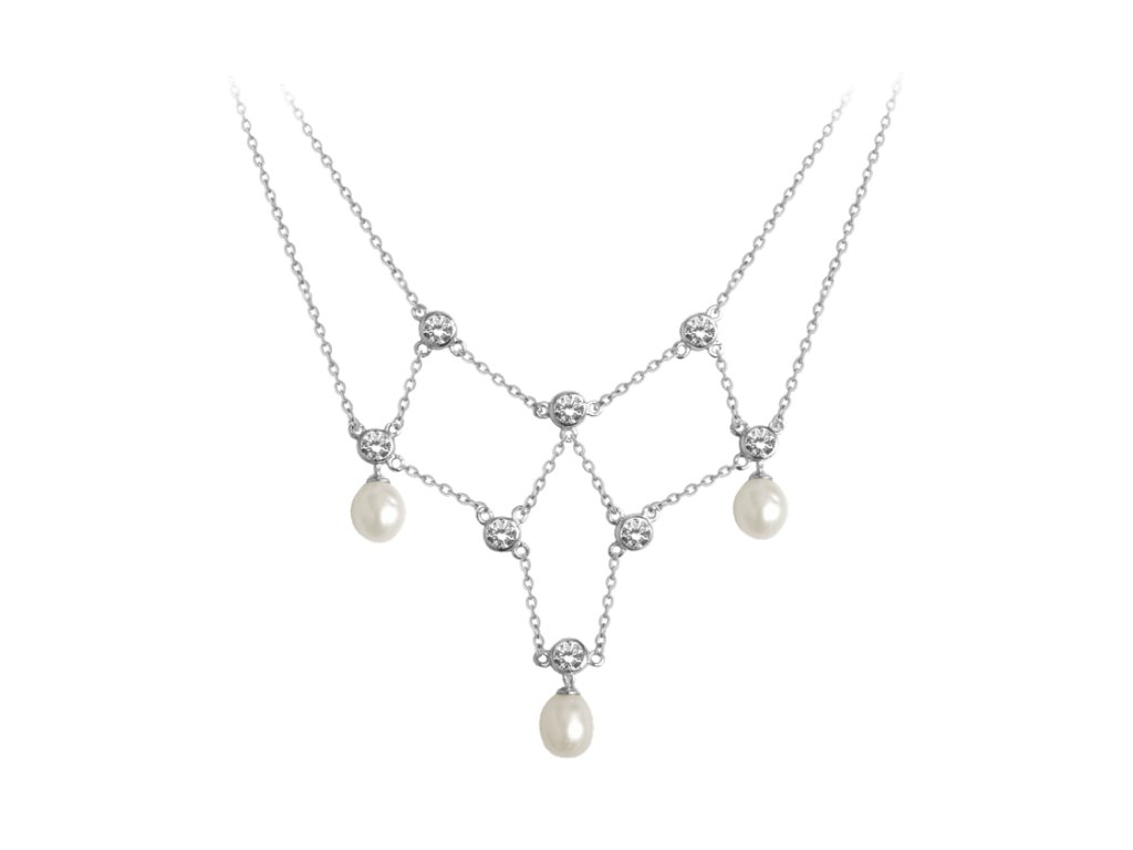 MINET Stříbrný náhrdelník s perličkami a bílými zirkony