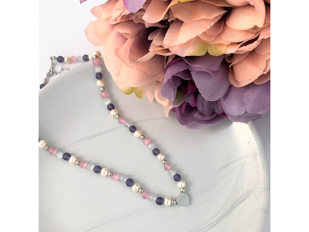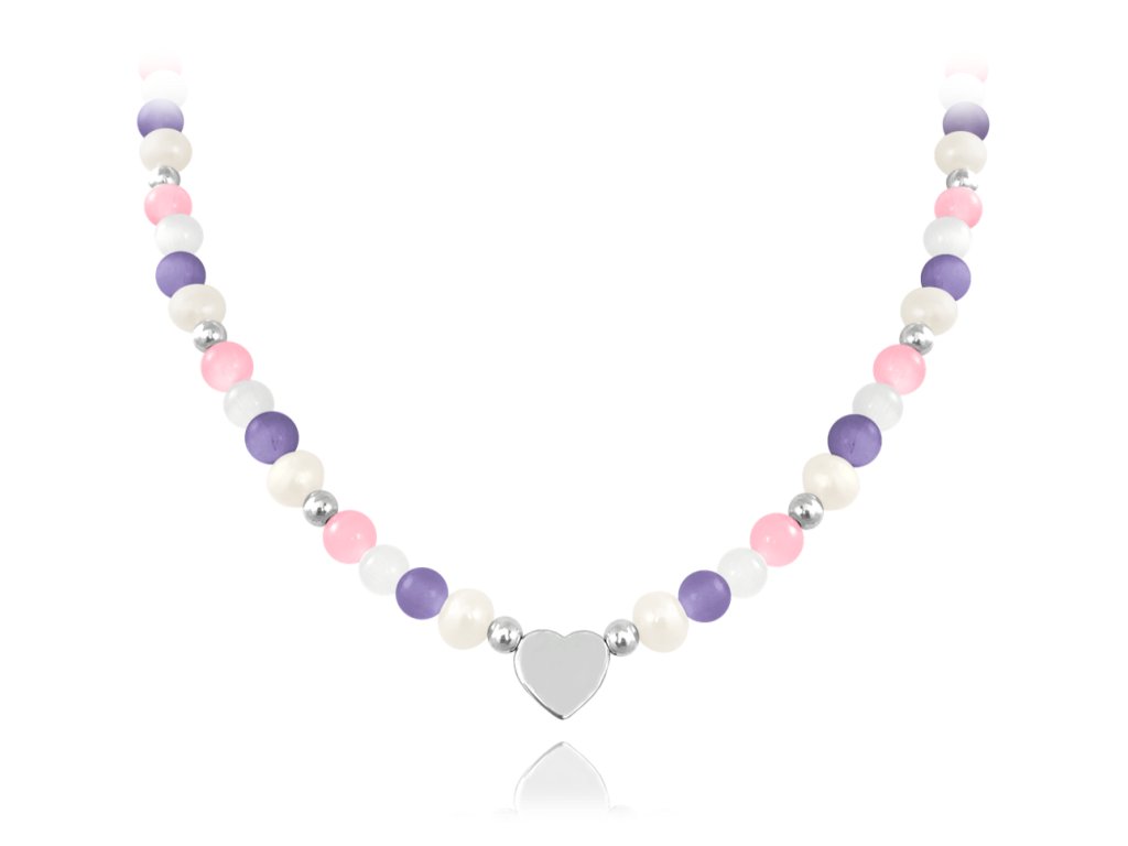 MINET Stříbrný náhrdelník s přírodními perlami a barevnými kuličkami - Ag 925/1000 20,45g