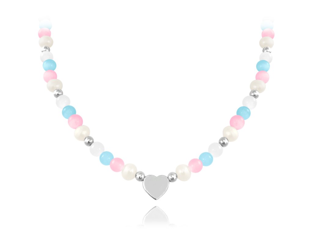 MINET Stříbrný náhrdelník s přírodními perlami a barevnými kuličkami - Ag 925/1000 21,20g