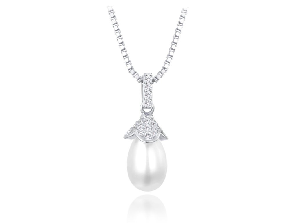 MINET Stříbrný náhrdelník s přírodními perlami a zirkonem