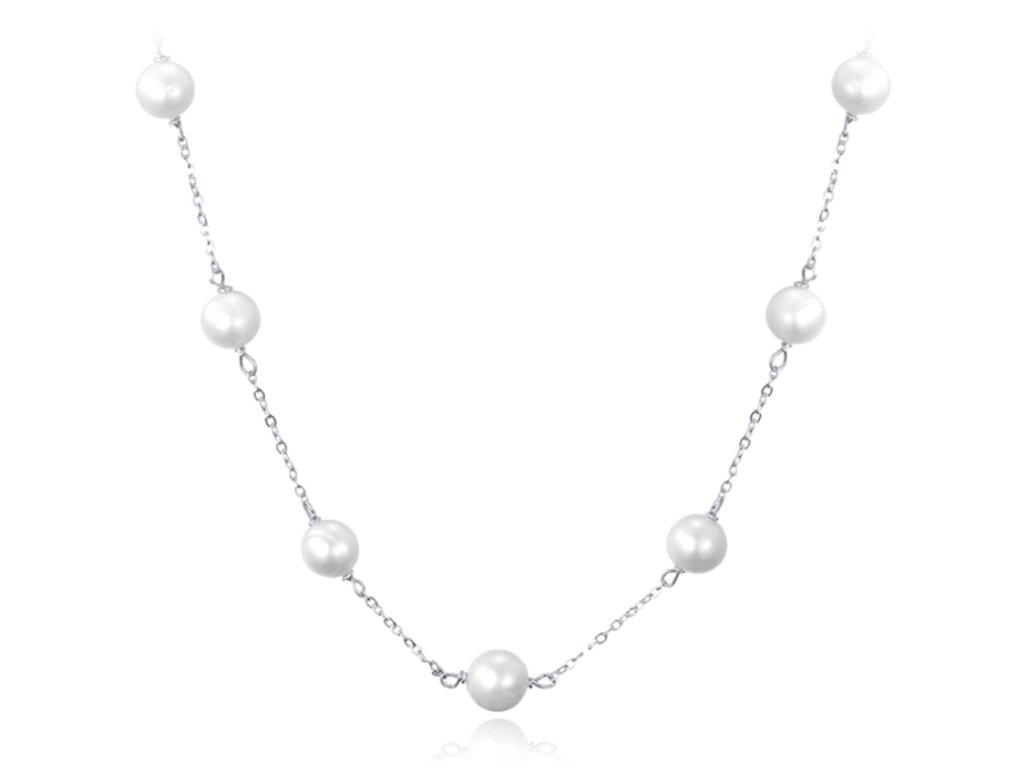 MINET Stříbrný náhrdelník s přírodními perlami Ag 925/1000 12,05g