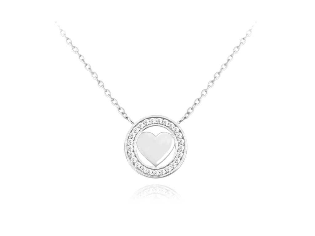 MINET Stříbrný náhrdelník se srdíčkem LOVE s bílými zirkony