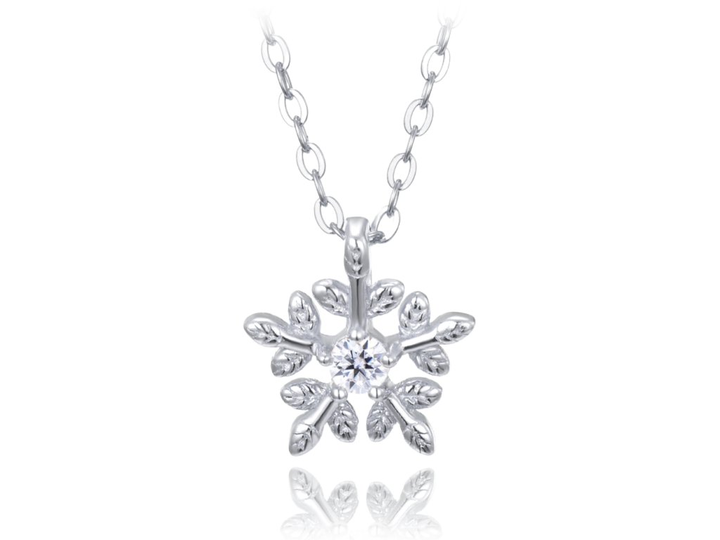 MINET Stříbrný náhrdelník sněhová vločka se zirkony