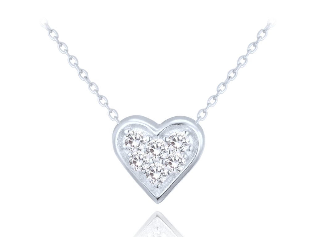 MINET Stříbrný náhrdelník srdce s bílými zirkony