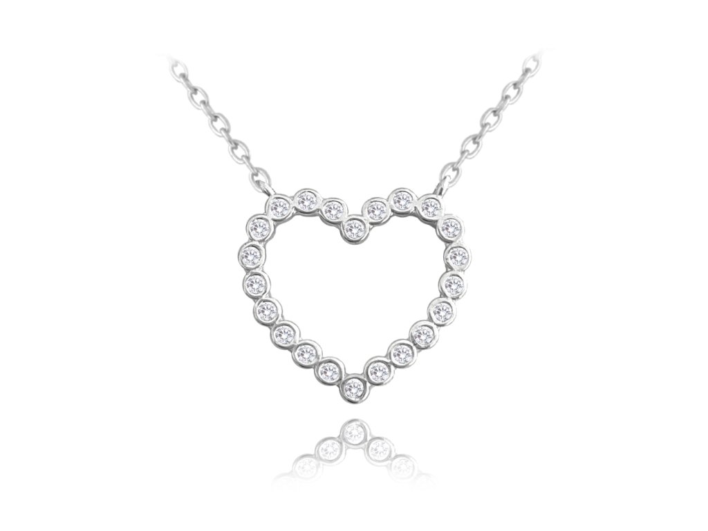 MINET Stříbrný náhrdelník SRDCE s bílými zirkony