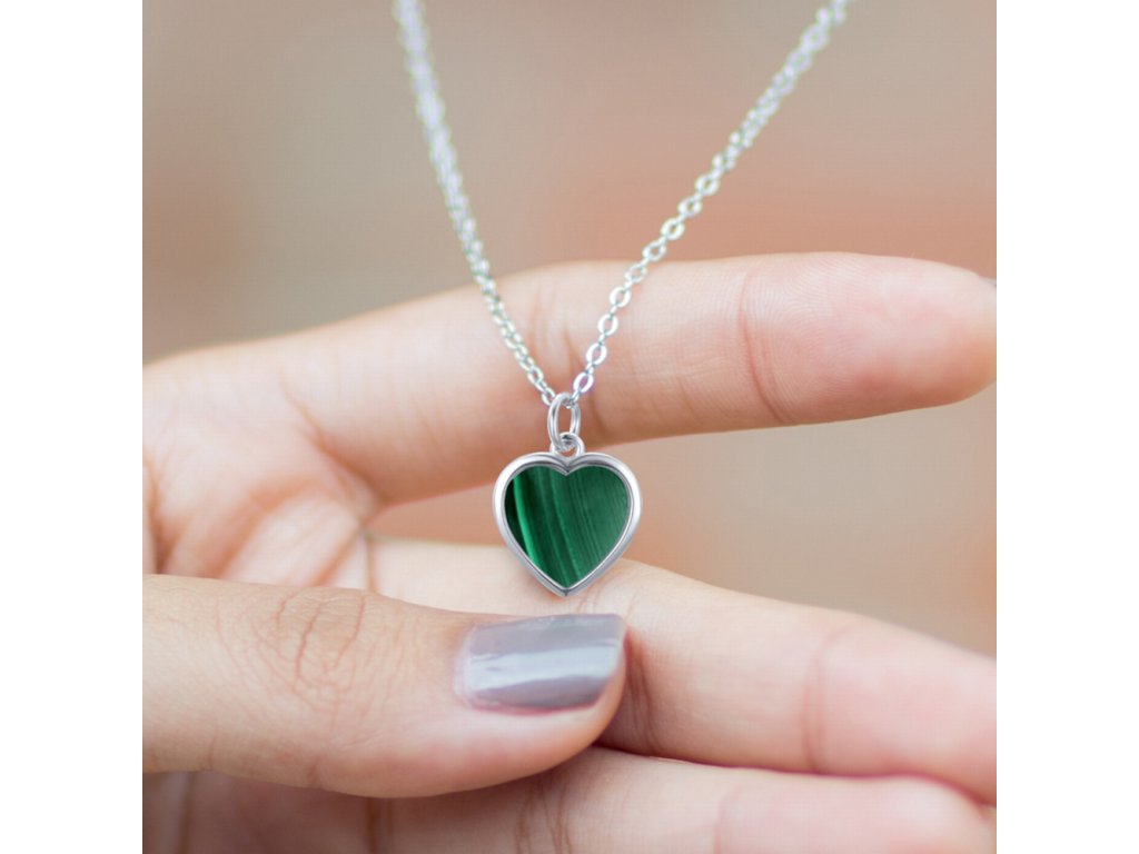 MINET Stříbrný náhrdelník srdíčko se zeleným malachitem