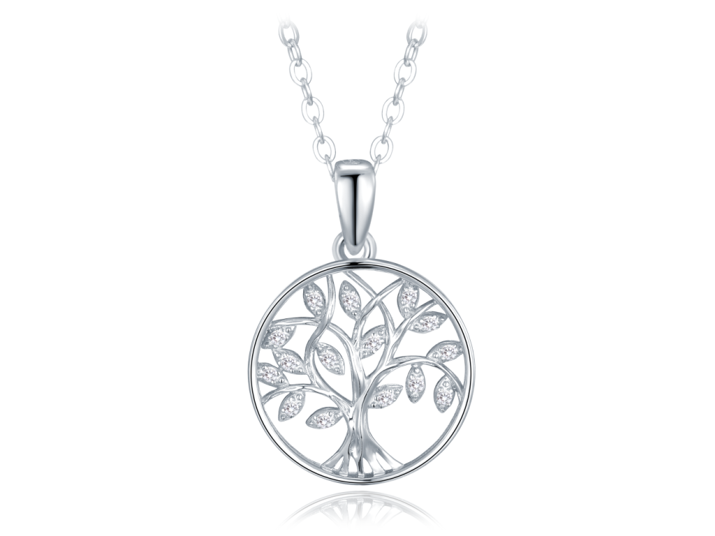 MINET Stříbrný náhrdelník strom života s bílými zirkony