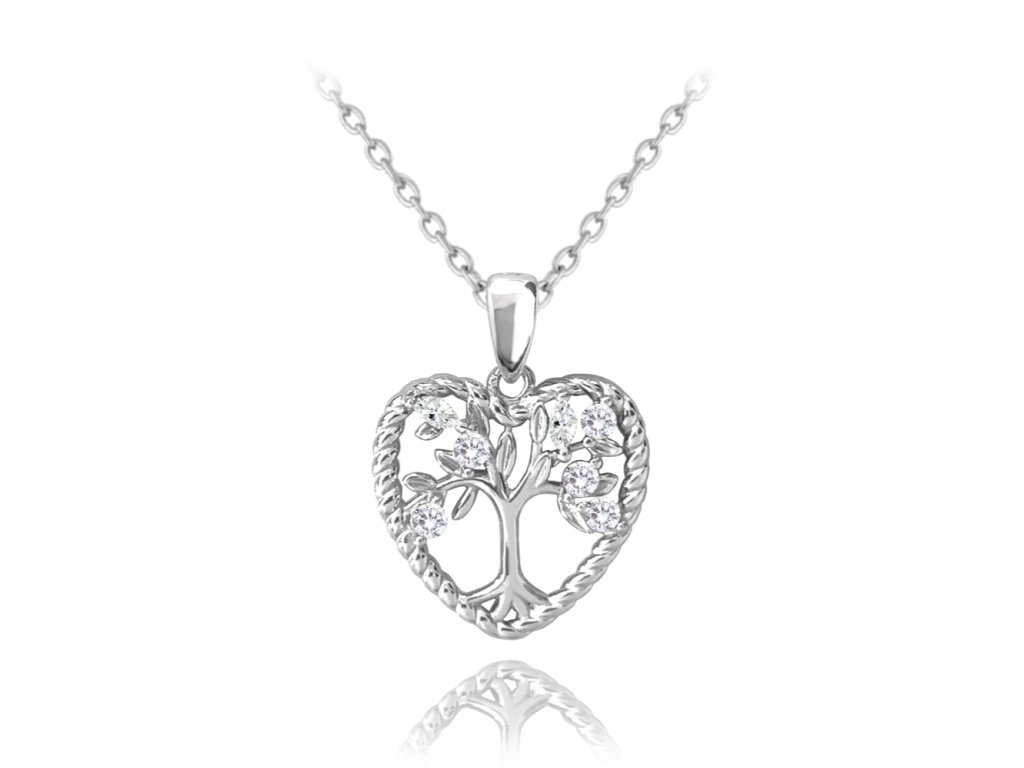MINET Stříbrný náhrdelník STROM ŽIVOTA V SRDCI s bílými zirkony