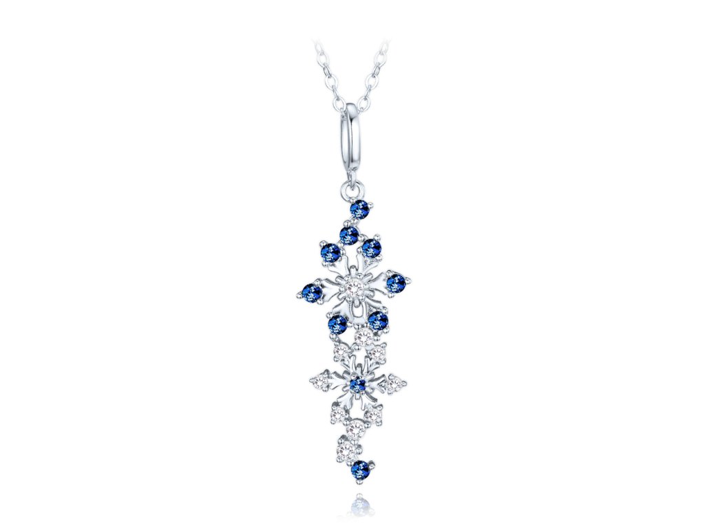 MINET Stříbrný náhrdelník vločky s bílými a modrými zirkony