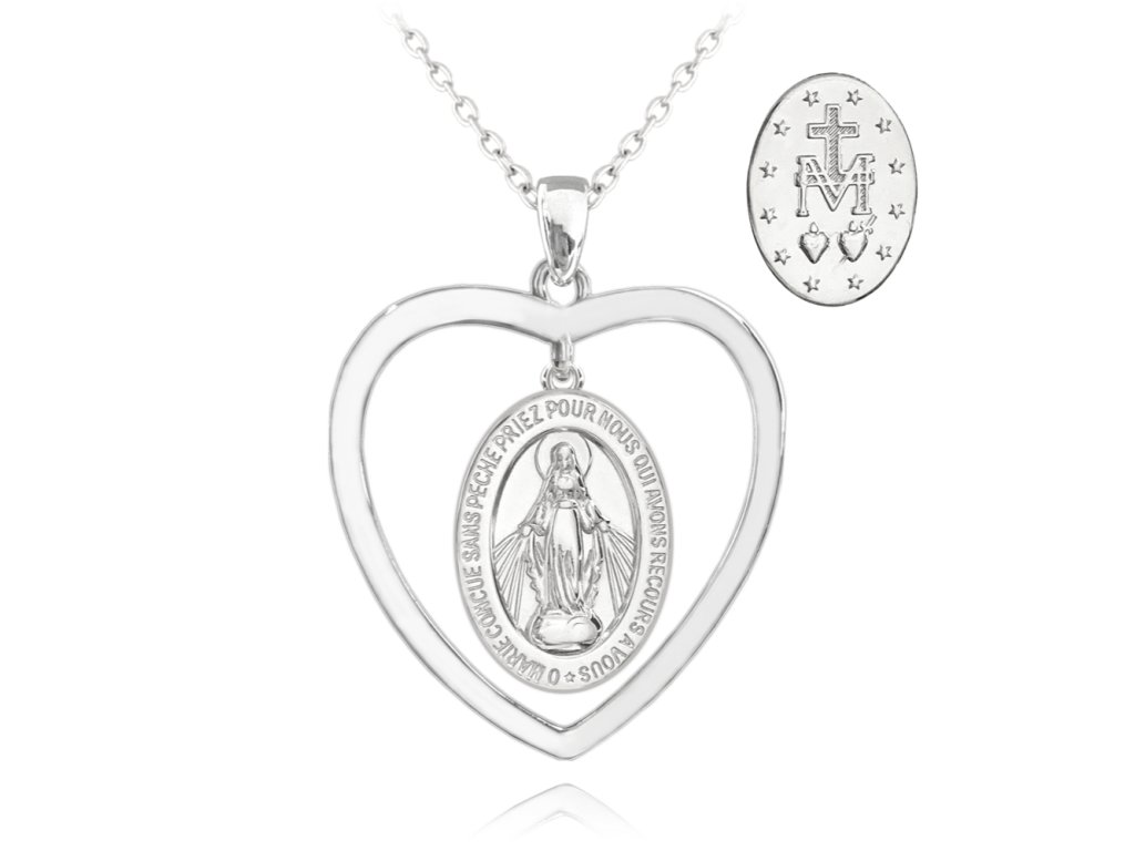 MINET Stříbrný náhrdelník Zázračná medaile | Medailka Neposkvrněného Početí v srdci
