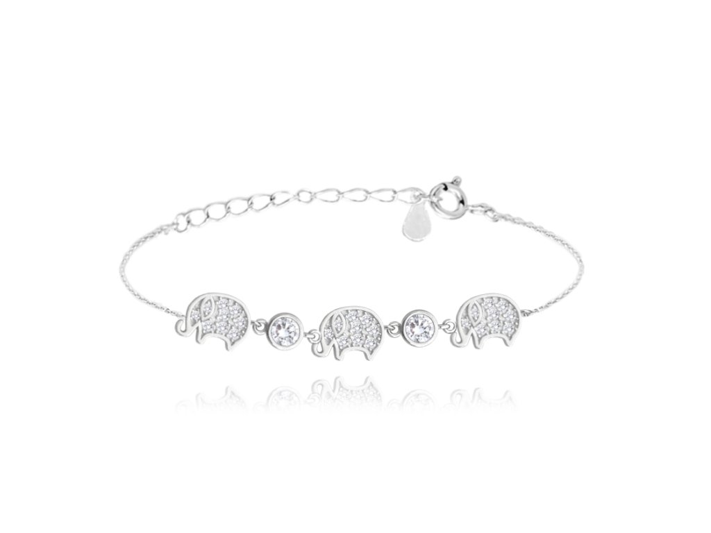 MINET Stříbrný náramek SLONI se zirkony