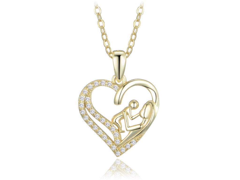 MINET Stříbrný pozlacený náhrdelník Madona s dítětem a bílými zirkony