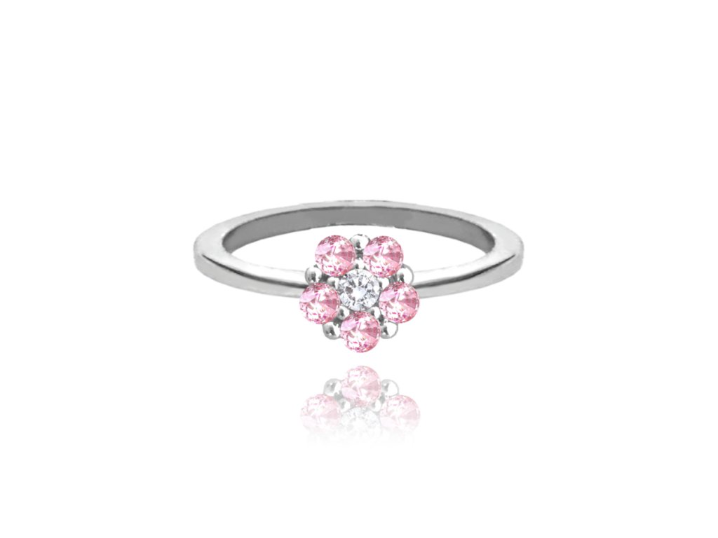 MINET Stříbrný prsten KYTIČKA s růžovými zirkony