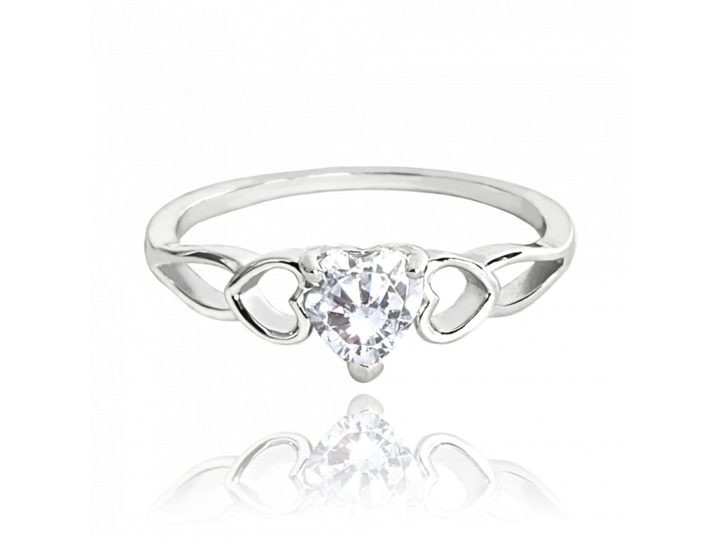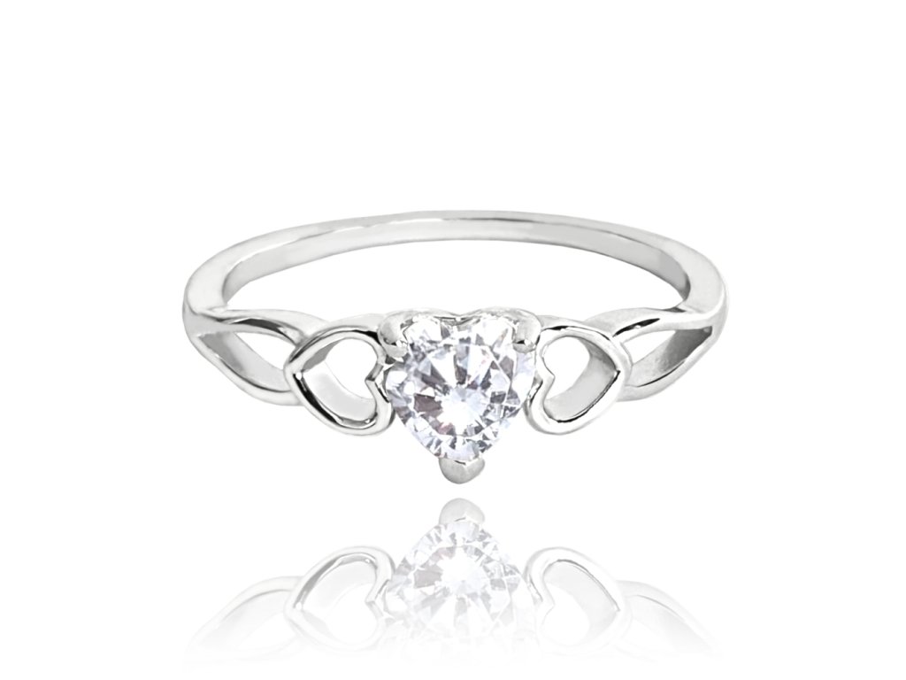 MINET Stříbrný prsten LOVE s bilým srdíčkovým zirkonem