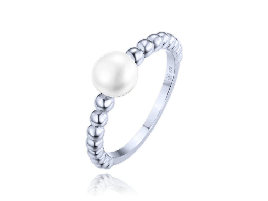 MINET Stříbrný prsten s perlou a kuličkami vel. 53