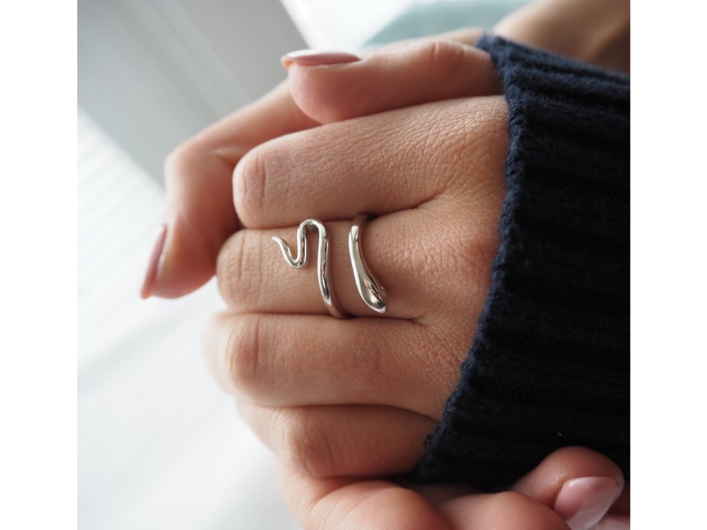 MINET Stříbrný prsten SNAKE s bílými zirkony