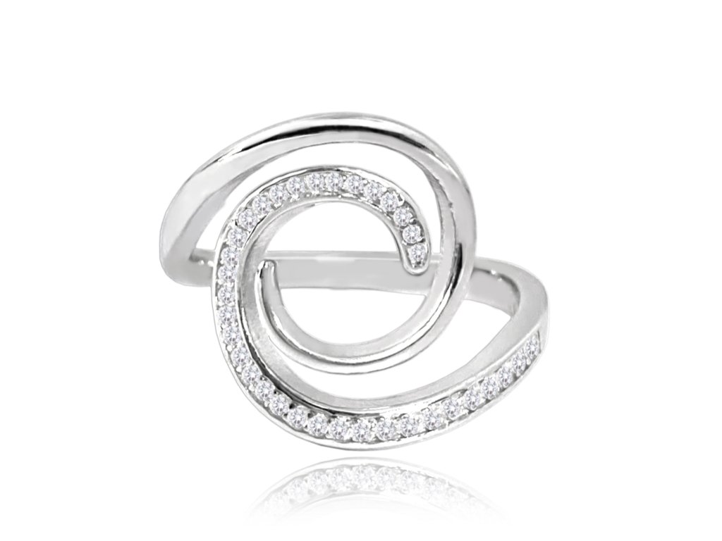 MINET Stříbrný prsten SPIRÁLA s bílými zirkony