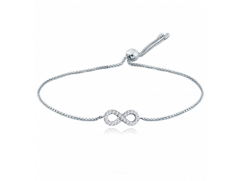 MINET Stříbrný stahovací náramek nekonečno se zirkony