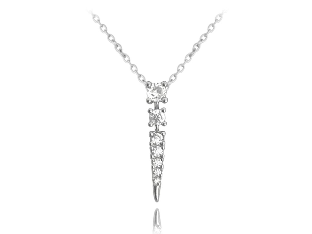 MINET Stříbrný visací náhrdelník ŠPIČKA s bílými zirkony