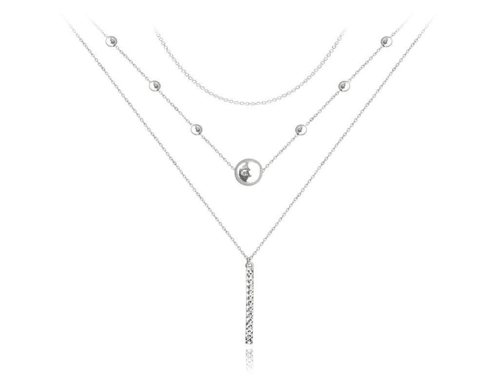 MINET Trojitý stříbrný náhrdelník broušená TYČKA s kuličkam