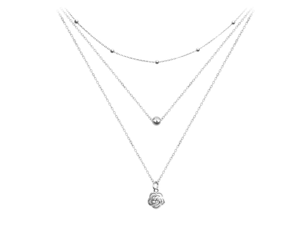 MINET Trojitý stříbrný náhrdelník RŮŽIČKA s bílými zirkony