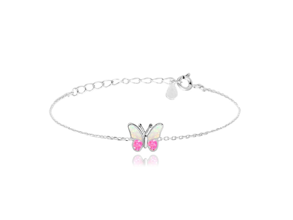 MINET Třpytivý dětský stříbrný náramek MOTÝLEK s růžovým opálem