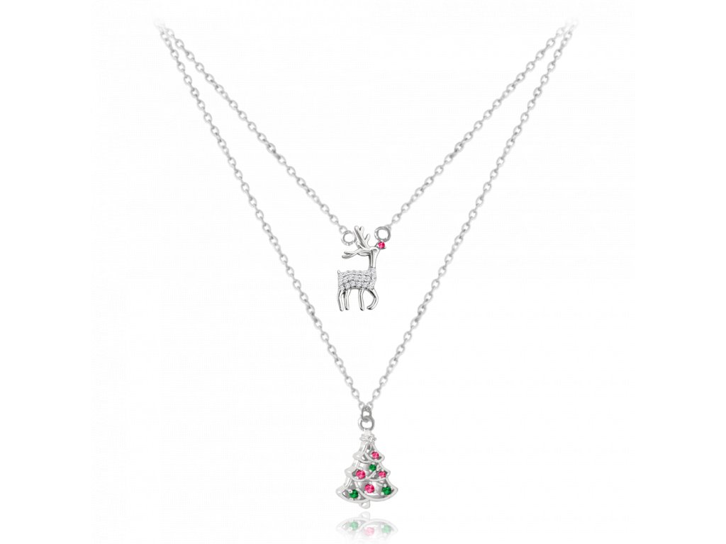 MINET Vánoční dvojitý stříbrný náhrdelník REINDEER a CHRISTMAS TREE
