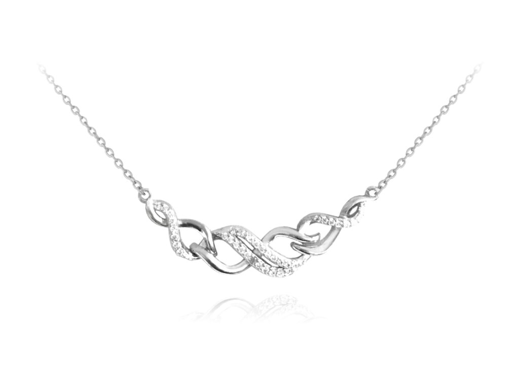 MINET Zapletený stříbrný náhrdelník s bílými zirkony