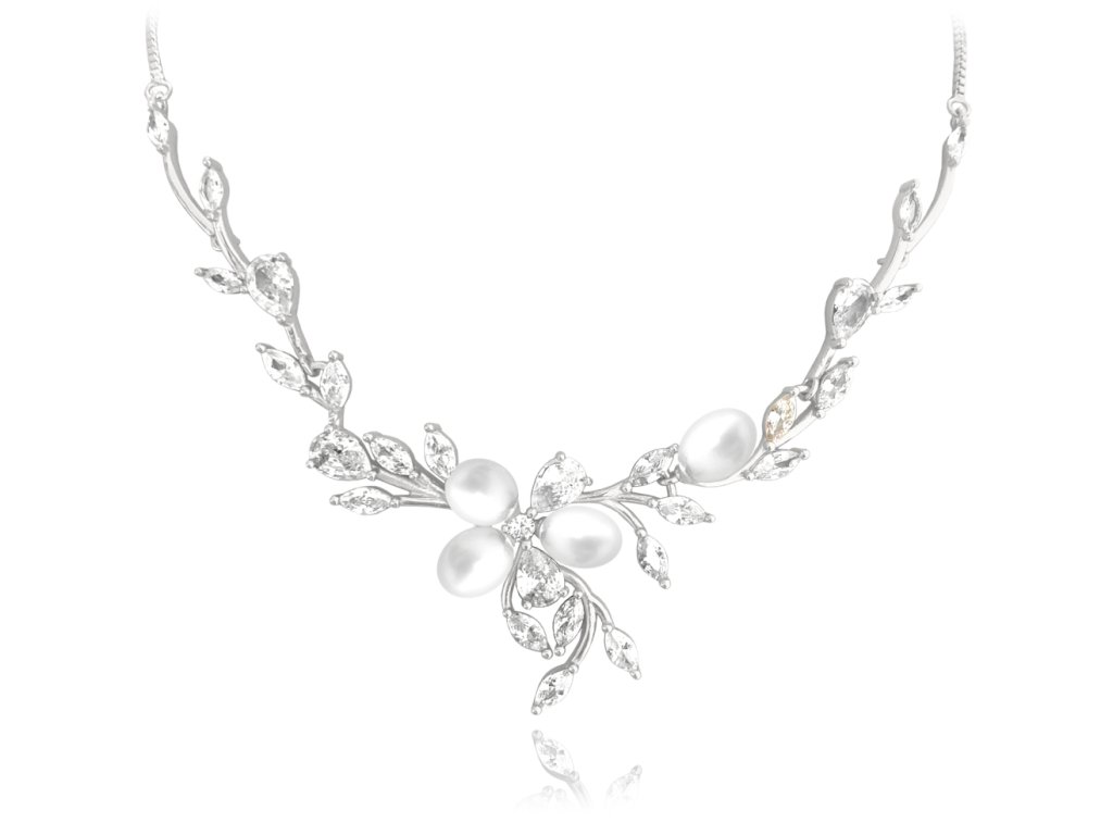 MINET Zdobný stříbrný náhrdelník přírodní perly s bílými zirkony - Ag 925/1000 15,75g