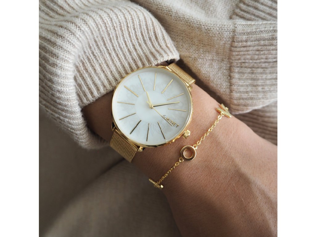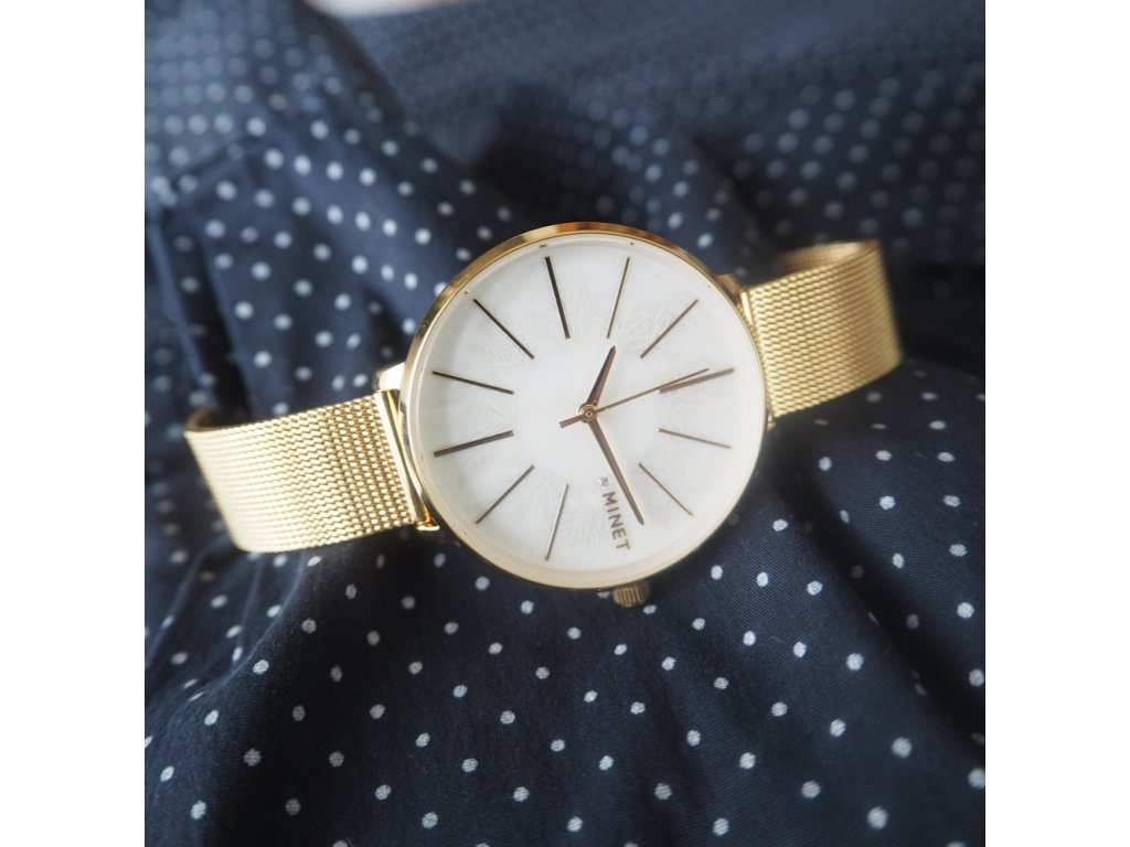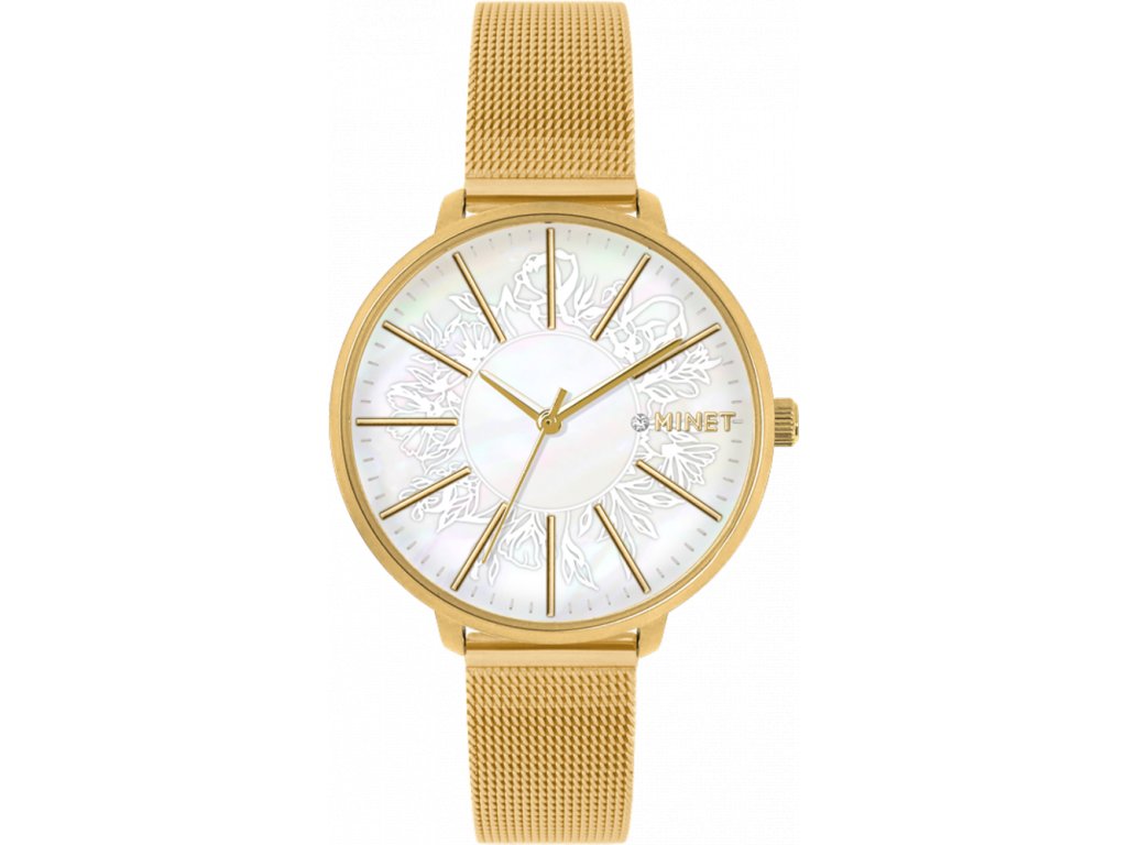MINET Zlaté dámské hodinky PRAGUE Gold Flower Mesh