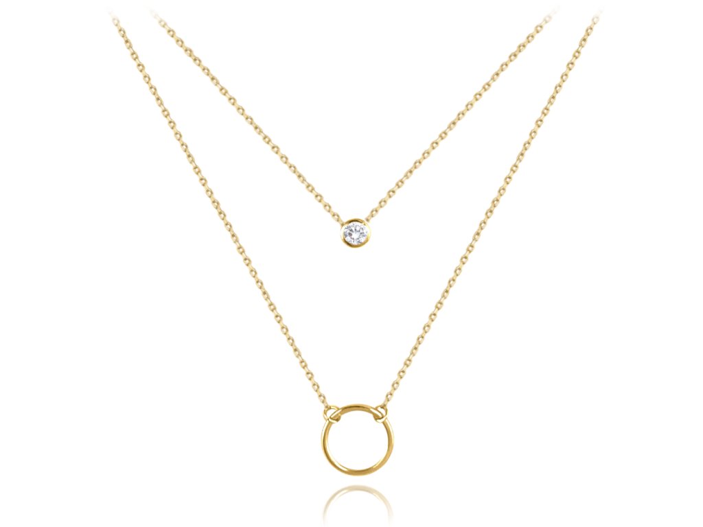 MINET Zlatý dvojitý náhrdelník kroužek s bílým zirkonem Au 585/1000 1,65g