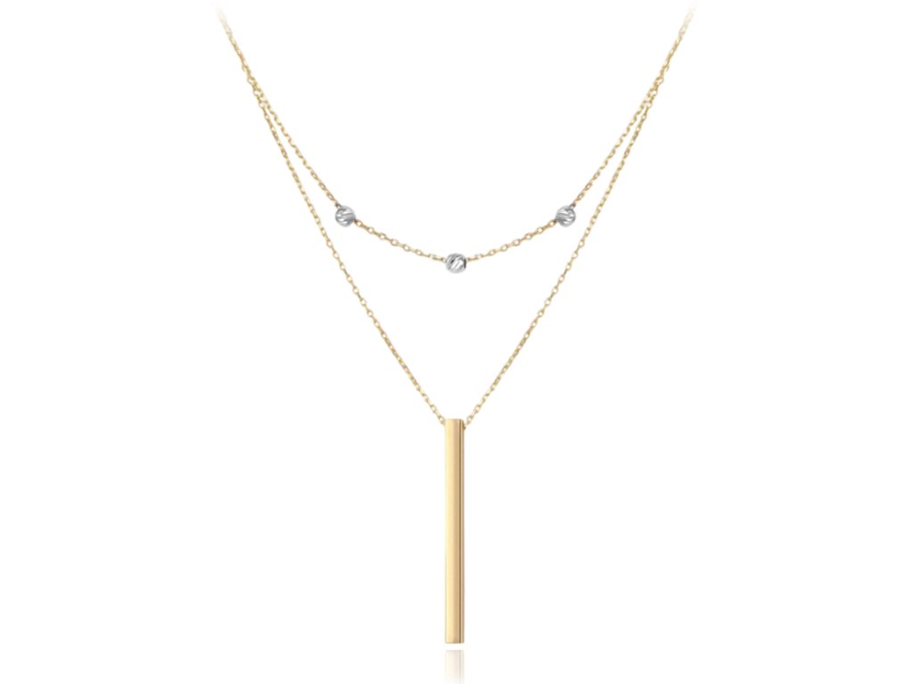 MINET Zlatý dvojitý náhrdelník s tyčkou a kuličkami z bílého zlata Au 585/1000 2,00g